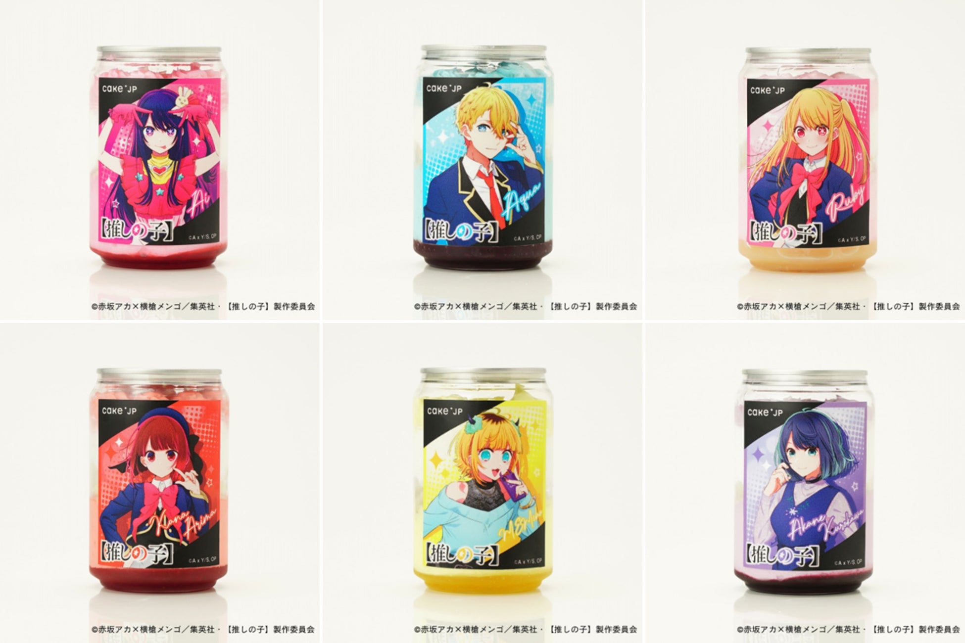 アイ、ルビー、アクア、有馬かな、MEMちょ、黒川あかねのケーキ缶