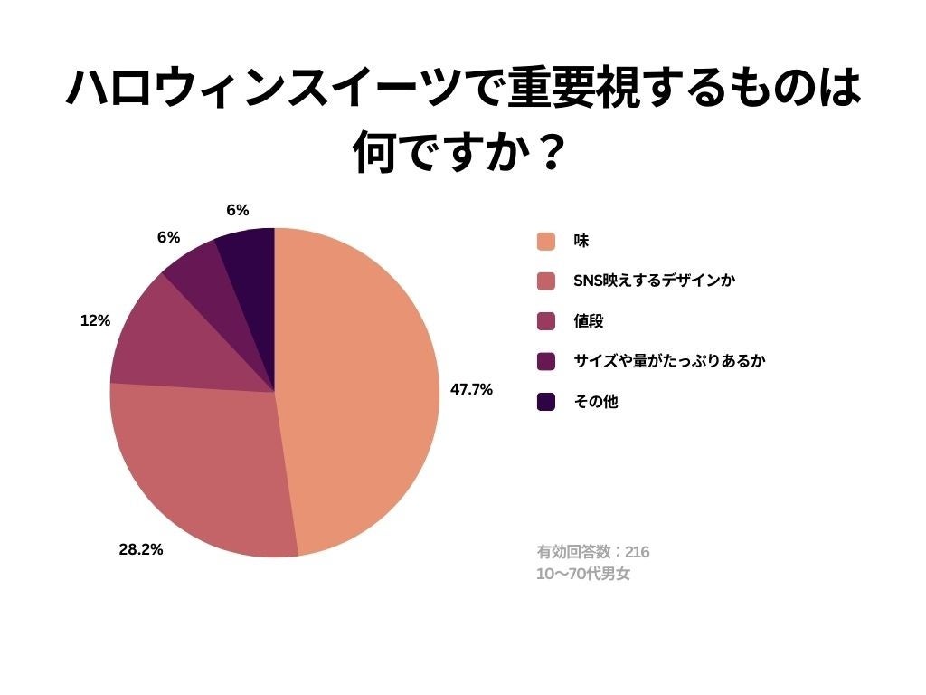 「ハロウィンスイーツ」で重要視することは値段よりも「SNS映えするデザイン」