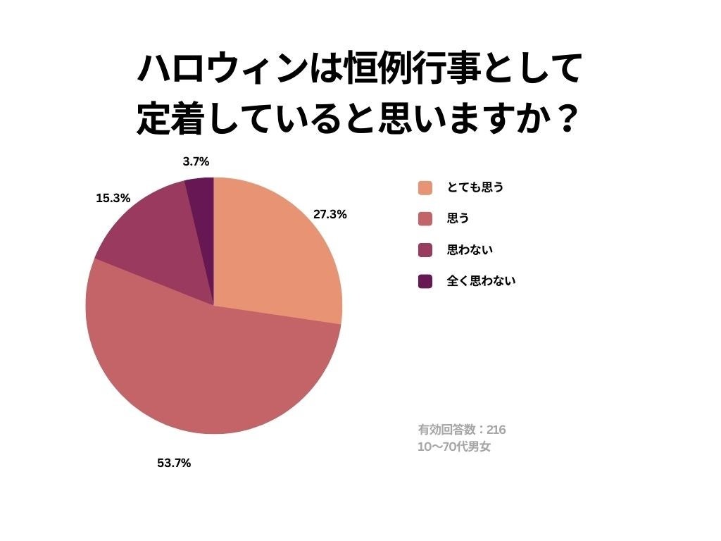「ハロウィン」は恒例行事として定着していると考えている人は約80%