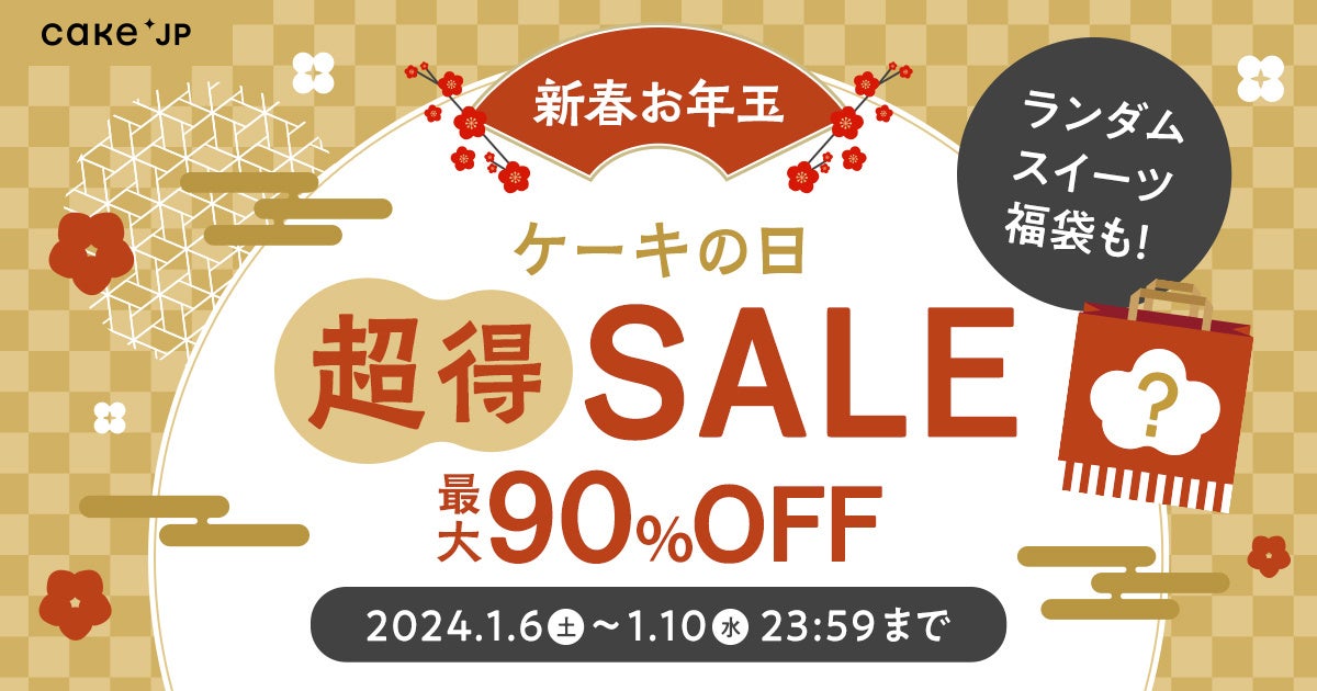 ケーキ・スイーツ専門通販サイト「Cake.jp(ケーキジェーピー)」を運営する株式会社Cake.jp(本社:東京都新宿区、代表取締役:高橋 優貴)は、年始のお年玉企画として、1月6日の「ケーキの日」に合わせて最大90%OFFのセールを実施いたします。