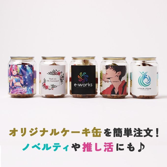 今回あらたに登場した「Cake.jp ノベルティ缶」は、容器自体をデザインできるので、食べ終わった後にも思い出や記念として残せるスイーツです。企業のノベルティとしてや、ケーキ缶においては10個から注文可能なため、推し活や小規模のパーティにもご利用いただけます。