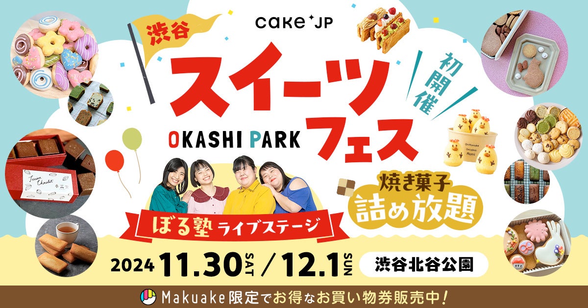 ケーキ・スイーツ専門通販サイト「Cake.jp(ケーキジェーピー)」を運営する株式会社Cake.jp(本社:東京都新宿区、代表取締役:高橋 優貴)は、2024年11月30日(土)と12月1日(日)の2日間、渋谷区立北谷公園にて、全国の和洋菓子が集結するスイーツフェス「OKASHI PARK (オカシパーク)」に全国から29店舗が出店することが決定しましたのでお知らせします。また、当日スイーツのお買い物に使えるお得なお買い物券をMakuake限定で販売いたします。